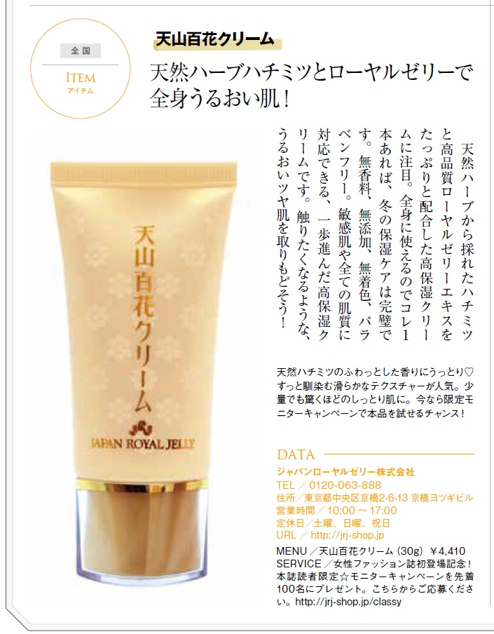 - 天山百花クリームが女性誌「CLASSY」に紹介されました!